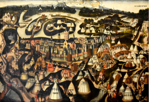 Beitragsbild: Das Lager Karls des Kühnen bei der Belagerung von Neuss 1475; Adriaen Van den Houte, 1562